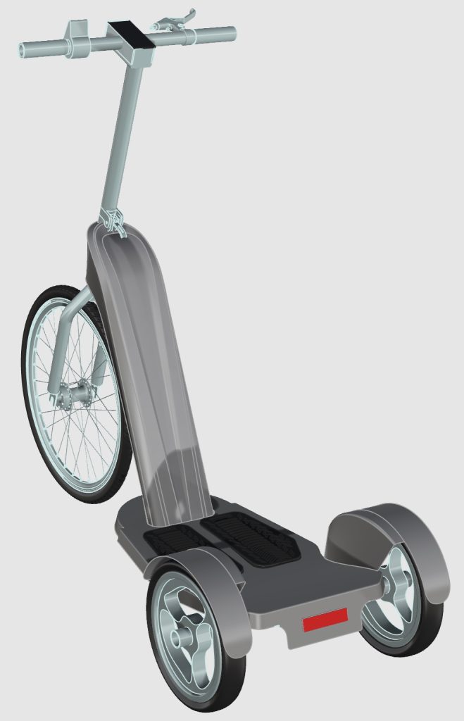 Additionally, I included a spot for attaching a shopping basket, as the scooter’s initial use was intended for large recreational and shopping centers. This feature allowed users to carry a limited amount of cargo without disrupting their balance.